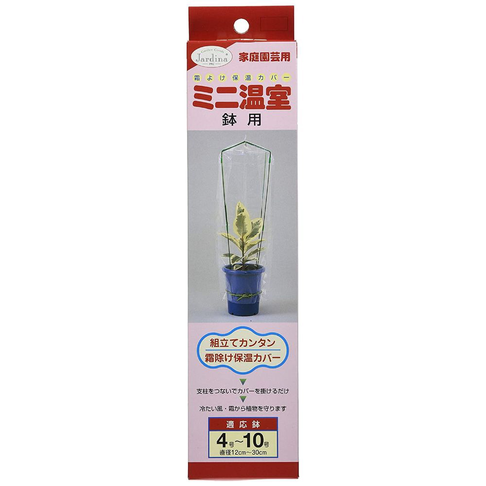 簡単組み立てのミニ温室。4〜10号鉢に対応し、風や霜から植物を守ります。冬越しや霜よけに最適です。