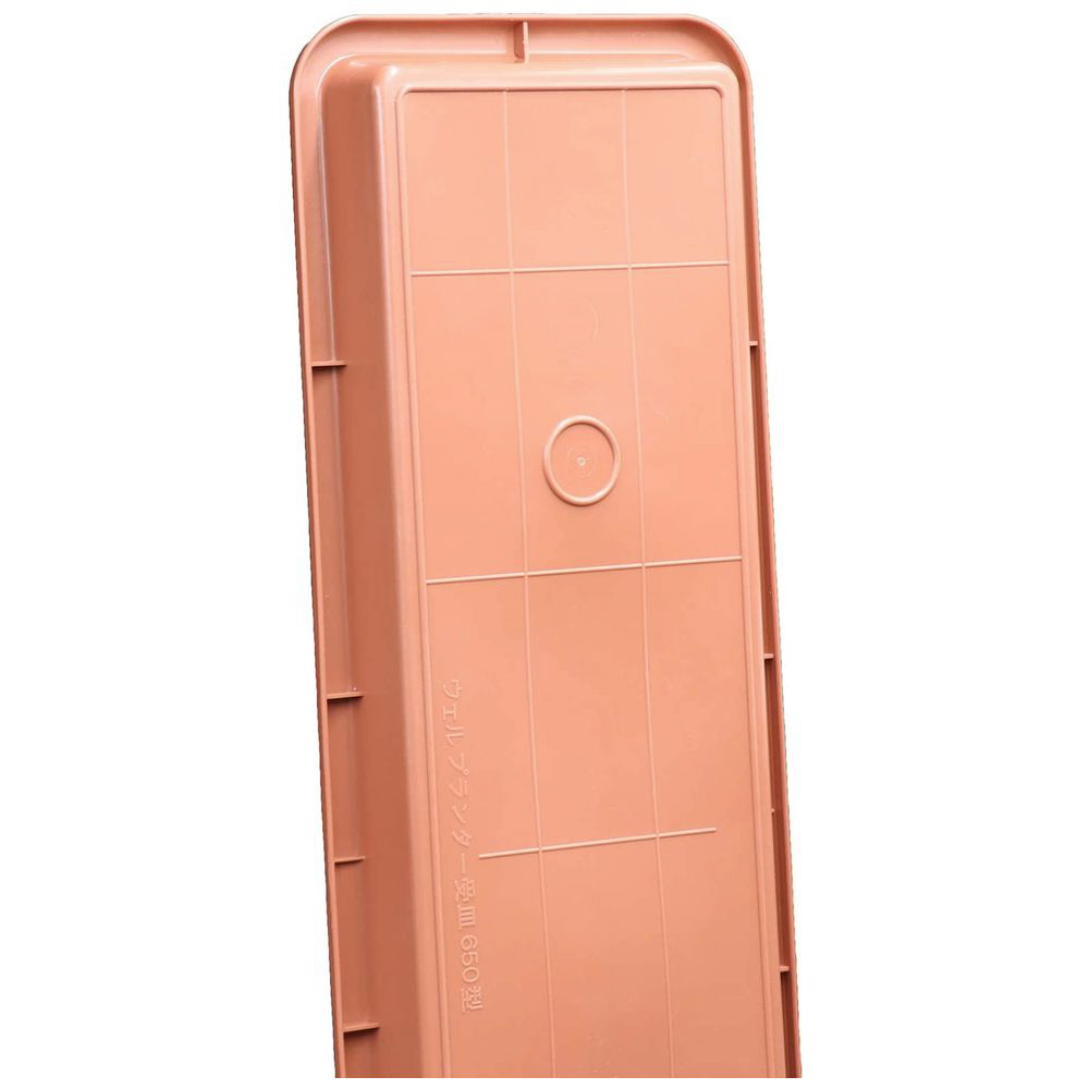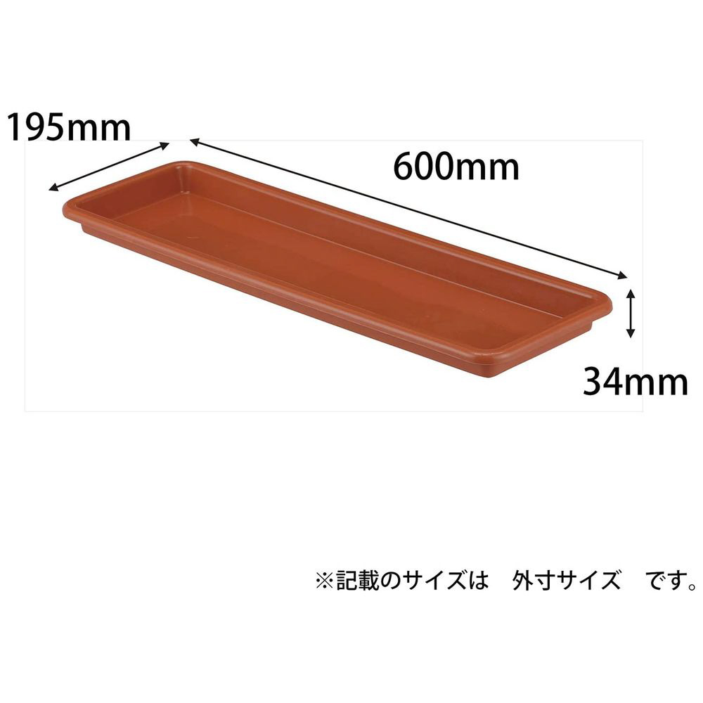 アップルウェアーのウェルプランター受皿650型ブラウン。幅600mm×奥行き195mm×高さ34mmの使いやすいサイズ感と、落ち着いたブラウンの色合いが魅力です。