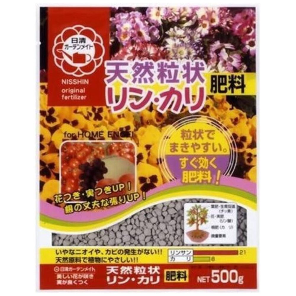 天然成分の粒状リン・カリ肥料で、花や果実、根の生育を促します。