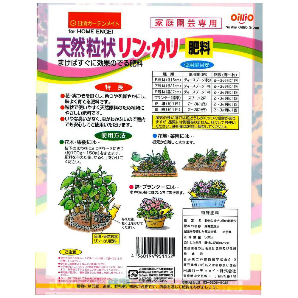花と果実、根の生育を促す天然粒状リン・カリ肥料。リン酸とカリのバランスに優れた肥料です。