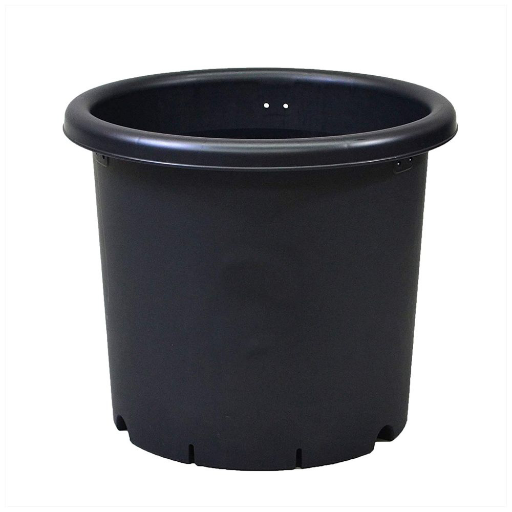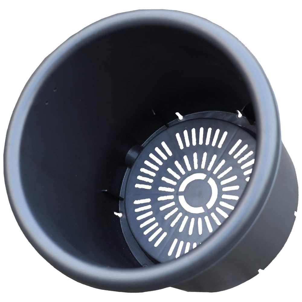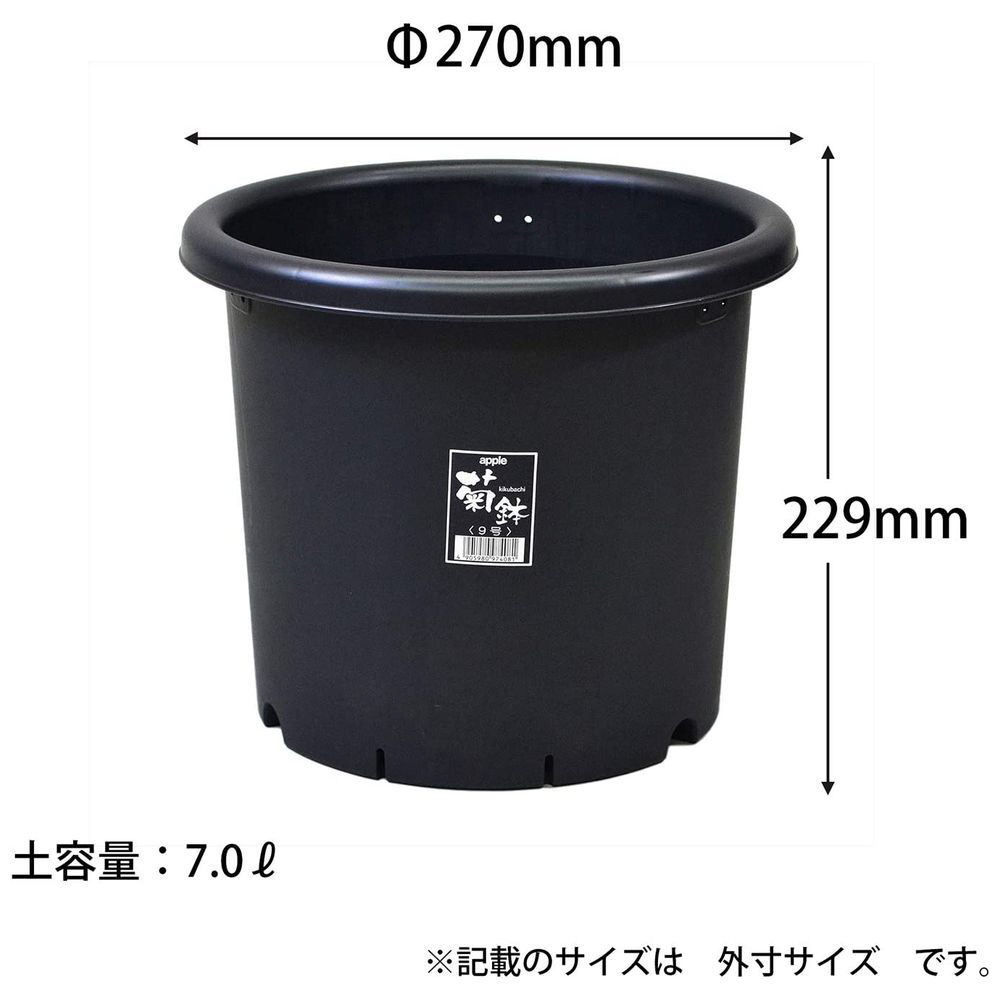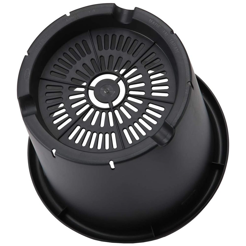 ポリプロピレン製の丈夫な8号ブラック菊鉢。スタッキング可能で収納にも便利です。