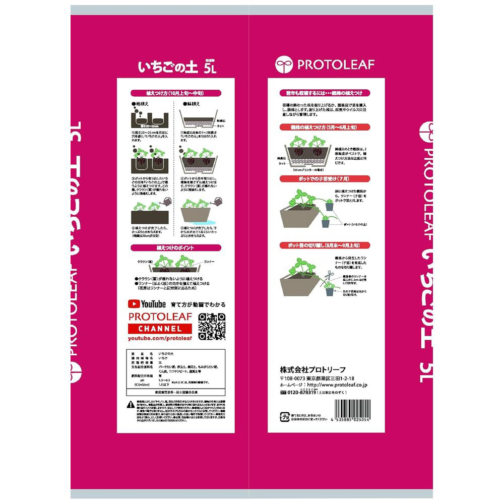 プロトリーフのいちごの土は、赤玉土、鹿沼土など厳選された材料を使用し、いちごの生育に最適な環境を実現した培養土です。