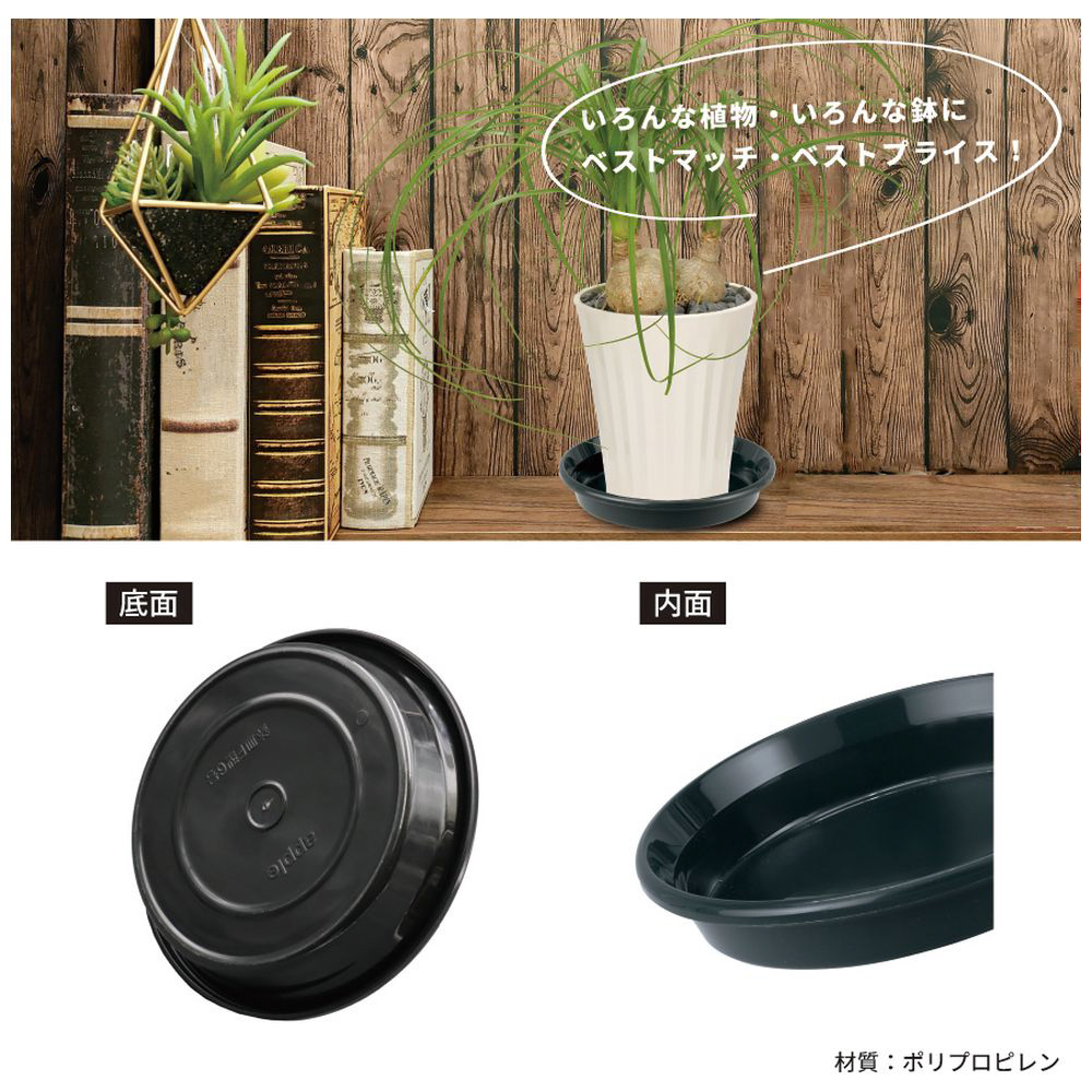 シンプルで使いやすい8号鉢用のブラック鉢皿。輪鉢F型、長鉢F型との併用で、床を汚れから守ります。