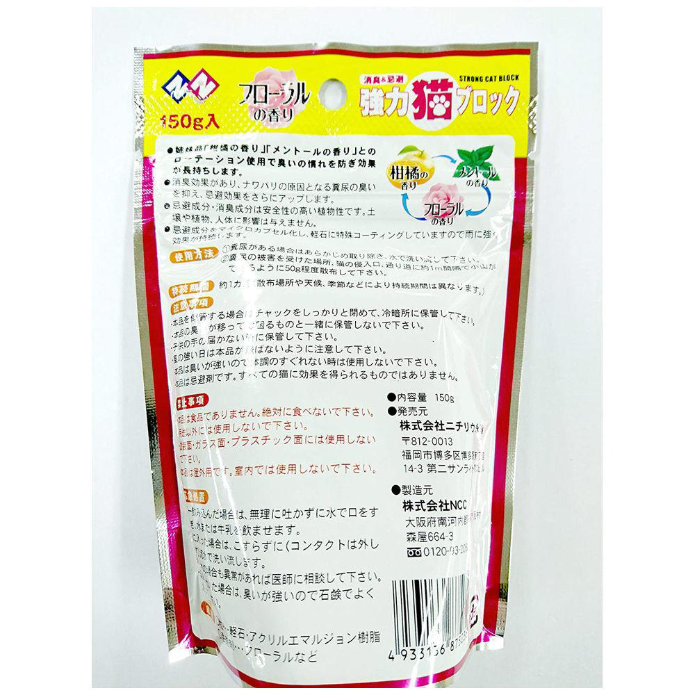 天然成分配合の猫よけ粒状剤。フローラルの香りで、猫を優しく寄せ付けません。