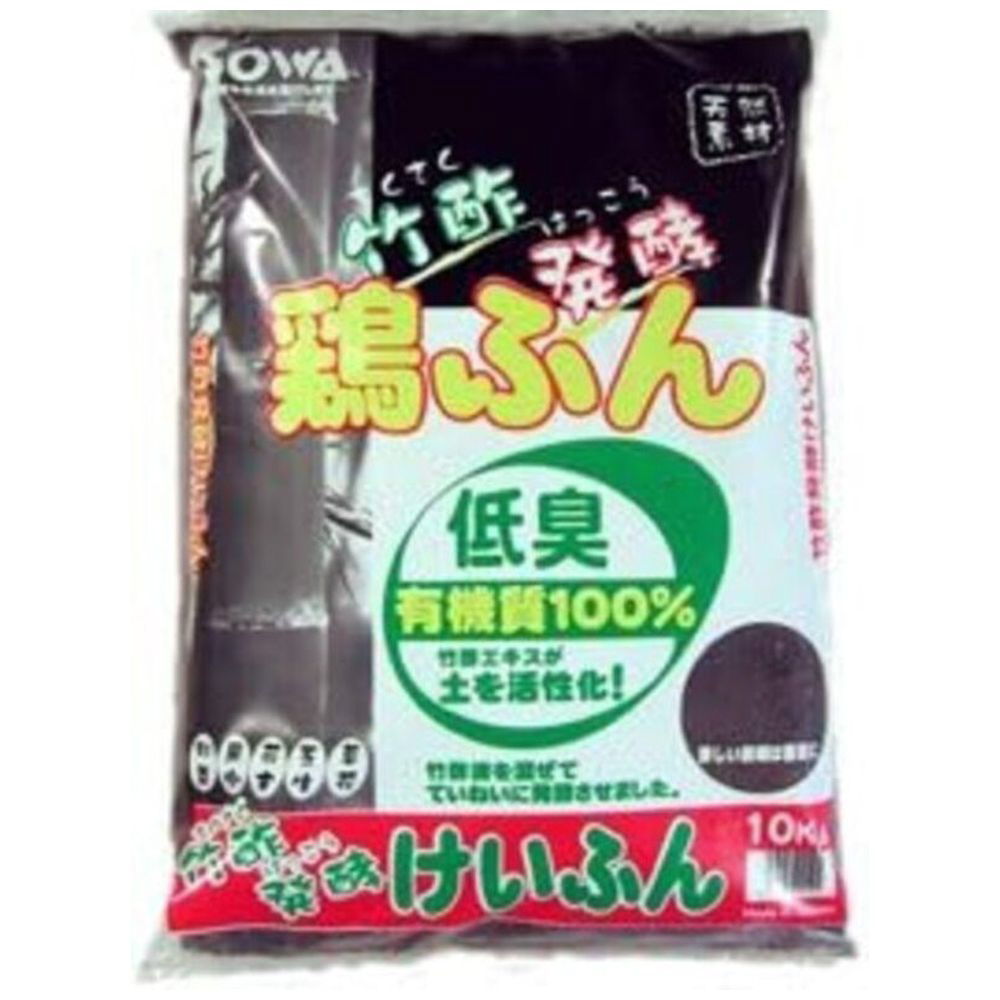 竹酢液発酵鶏ふん肥料。10kg入りで、植物の生育と土壌改良に効果的です。