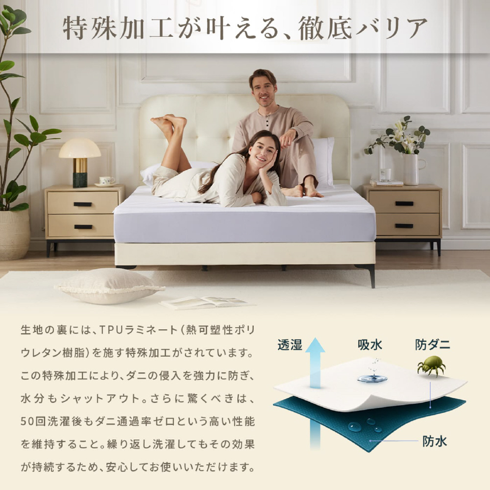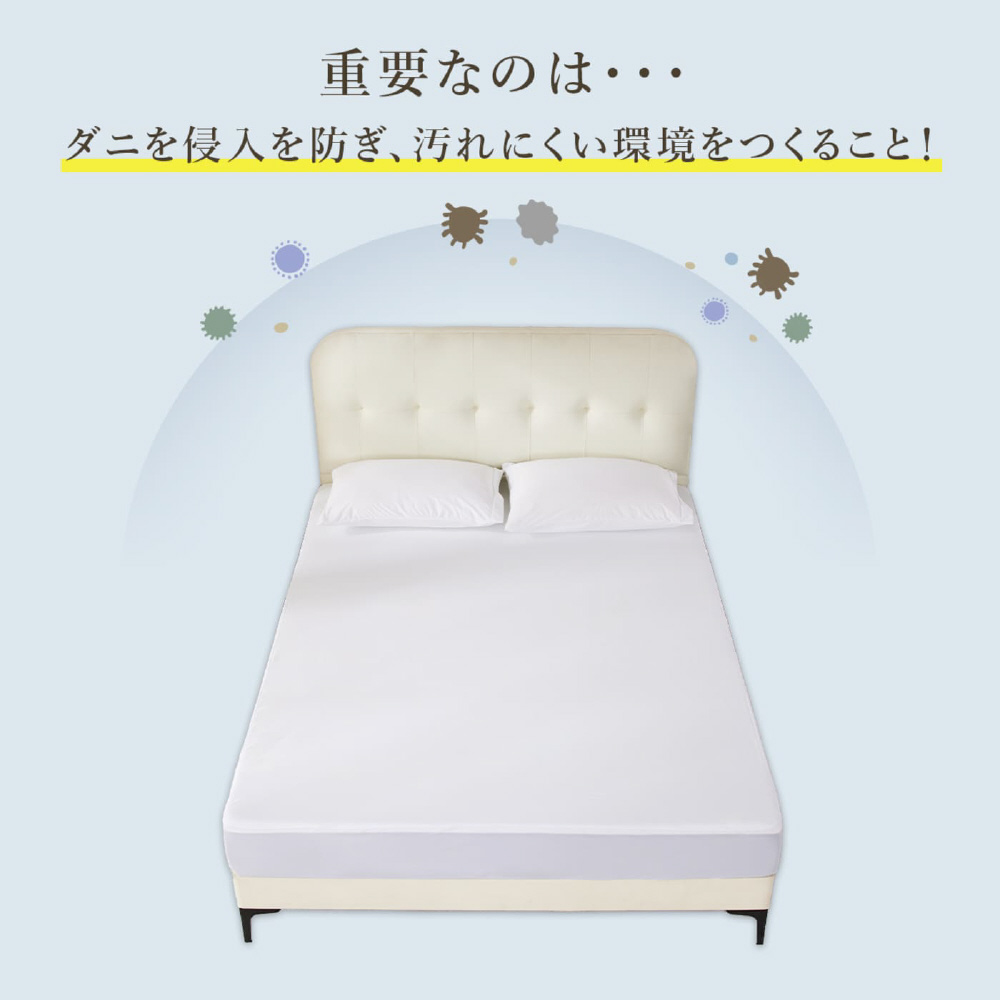 寝汗・皮脂・フケ・デッドスキン(死んだ皮膚)・突然の出血・おねしょなどによりマットレスは毎晩汚れていきます。ベッドシーツだけでは到底、寝床をキレイに保てません。そこで、セーブ・ユア・ベッド マットレスプロテクターの出番です。防水膜加工が施された生地が、マットレスを汚れから守ります。つまり、あなた(とあなたの大切な人)の健康的な眠りを守ります。