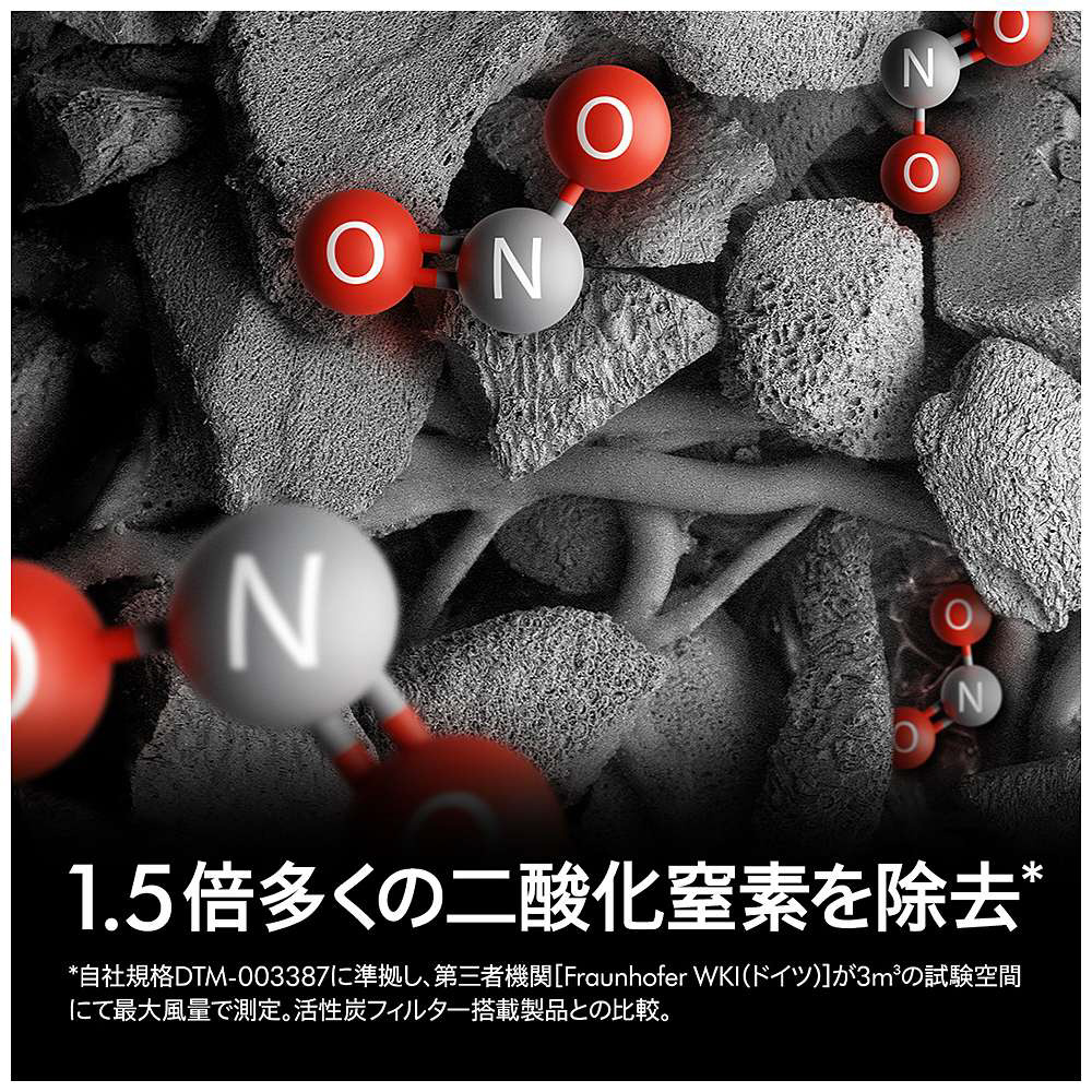 従来の活性炭フィルターより1.5倍多くの二酸化窒素を除去1