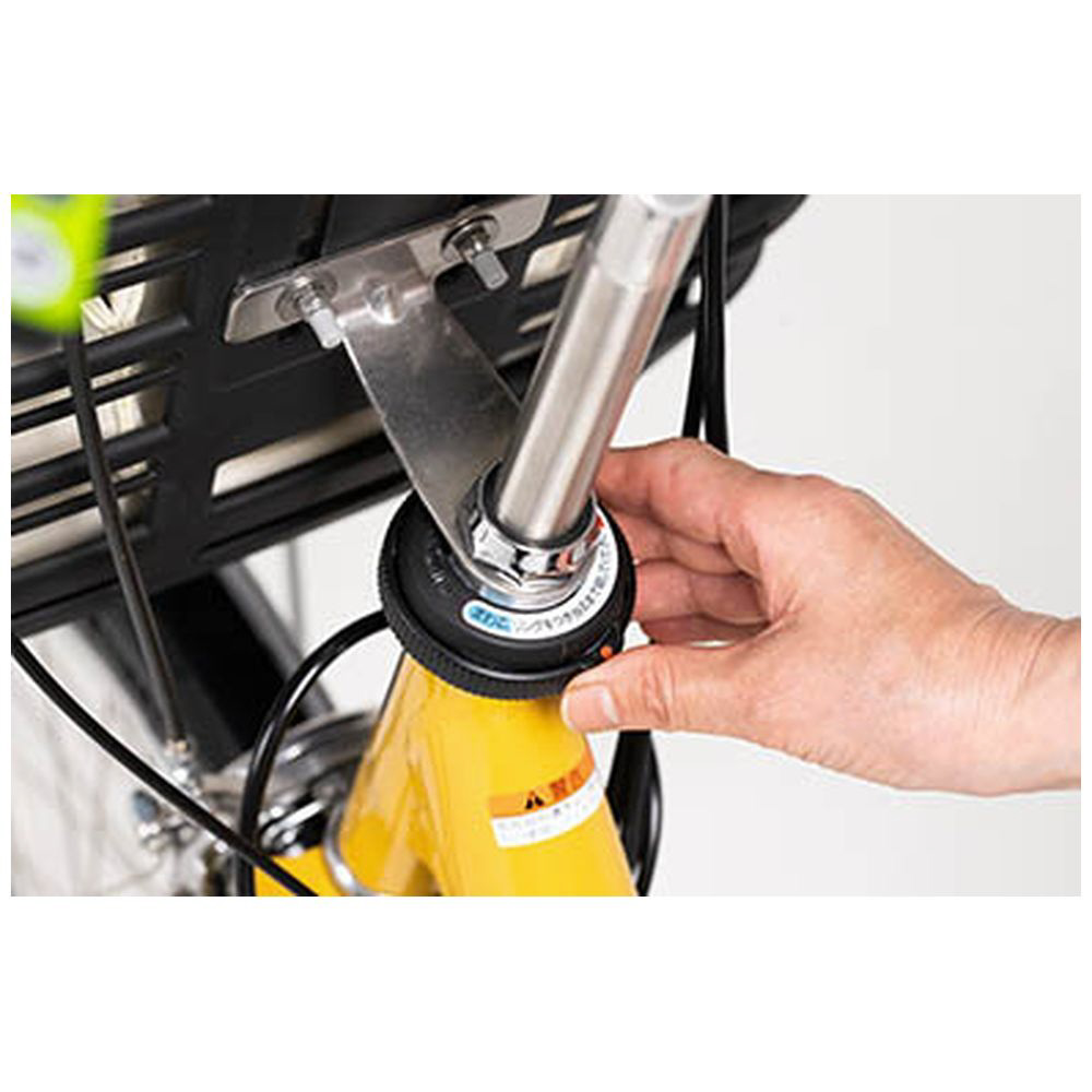 リングを回すだけでハンドルのふらつきを抑止するパーキングストッパー。駐輪時や荷物を載せ降ろしするときも安心です。