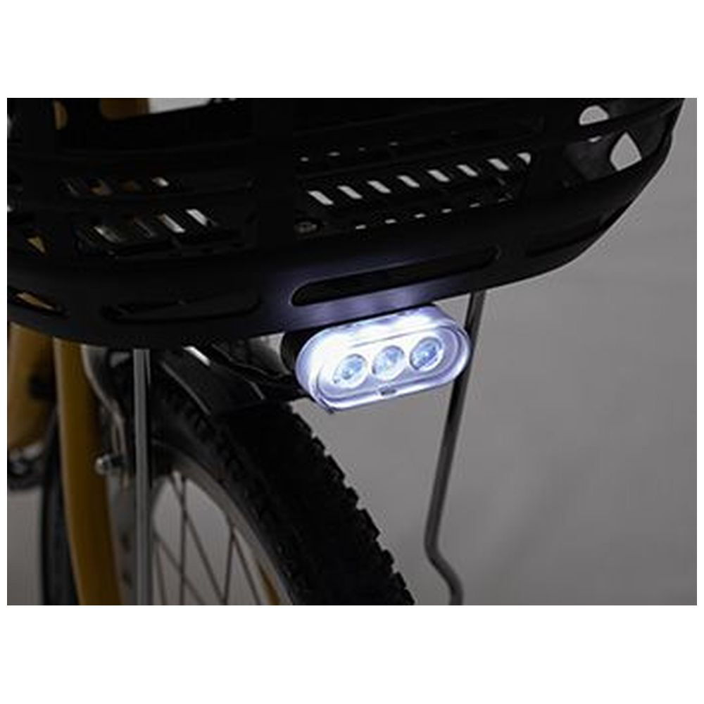 球切れの心配がない、ホワイトLEDを使用したバッテリーランプ。バッテリー電源を利用しているので、ランプ点灯時でもペダルが重くなりません。