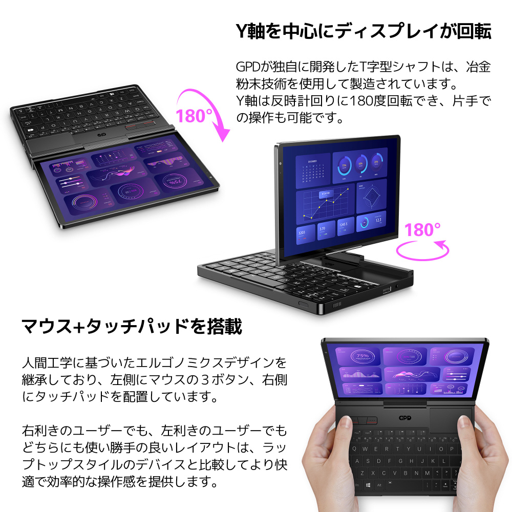GPDPK4-373220R ポータブルゲーミングPC 8.8型 GPD Pocket 4 ブラック [Windows11 Home /AMD Ryzen AI 9 /メモリ:64GB /SSD:2TB /無し /英語版キーボード /2025年3月モデル]