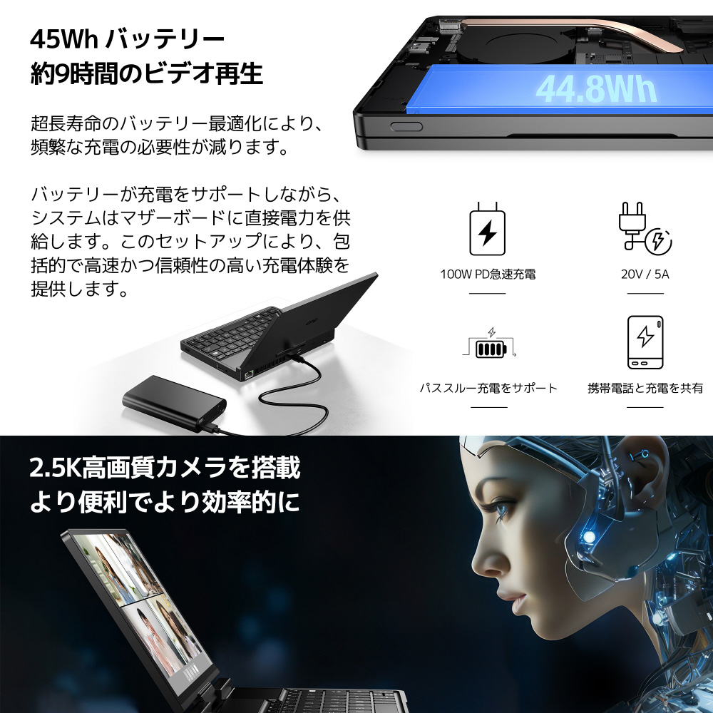 8.8インチの LTPS ディスプレイを搭載し、優れた視覚性能を備えています。LTPSディスプレイは、97%のDCI-P3広色域とプロ仕様のICCカラーキャリブレーションを実現します。解像度 2.5K、アスペクト比は16:10で、ピクセル密度は343ppi、リフレッシュレートは144Hzでディスプレイをゲームレベルの滑らかさに引き上げます。