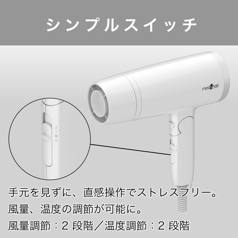 適度に広がる風で髪の長さを問わずバランスよくドライ。