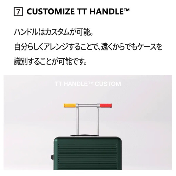 パスポートや財布など、すぐに取り出したいアイテムを収納するためのポケットをTTハンドルの下に搭載。