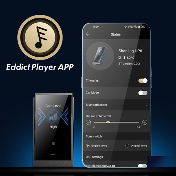 UP6を接続し、スマートフォンから「EddictPlayer APP」を連携させることで、UP6のBluetoothコーデック、EQ(イコライザー)設定などをスムーズに変更・確認することが可能です。
