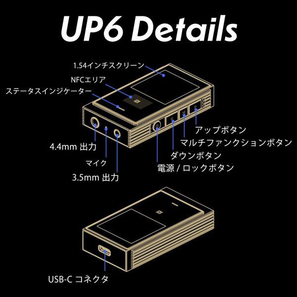 UP6は、UA6より継承する新世代の筐体デザインとUIデザインを採用し、3つのファンクションキーと電源ボタンを採用することで、物理的なボタン操作による快適なユーザービリティを実現しています。