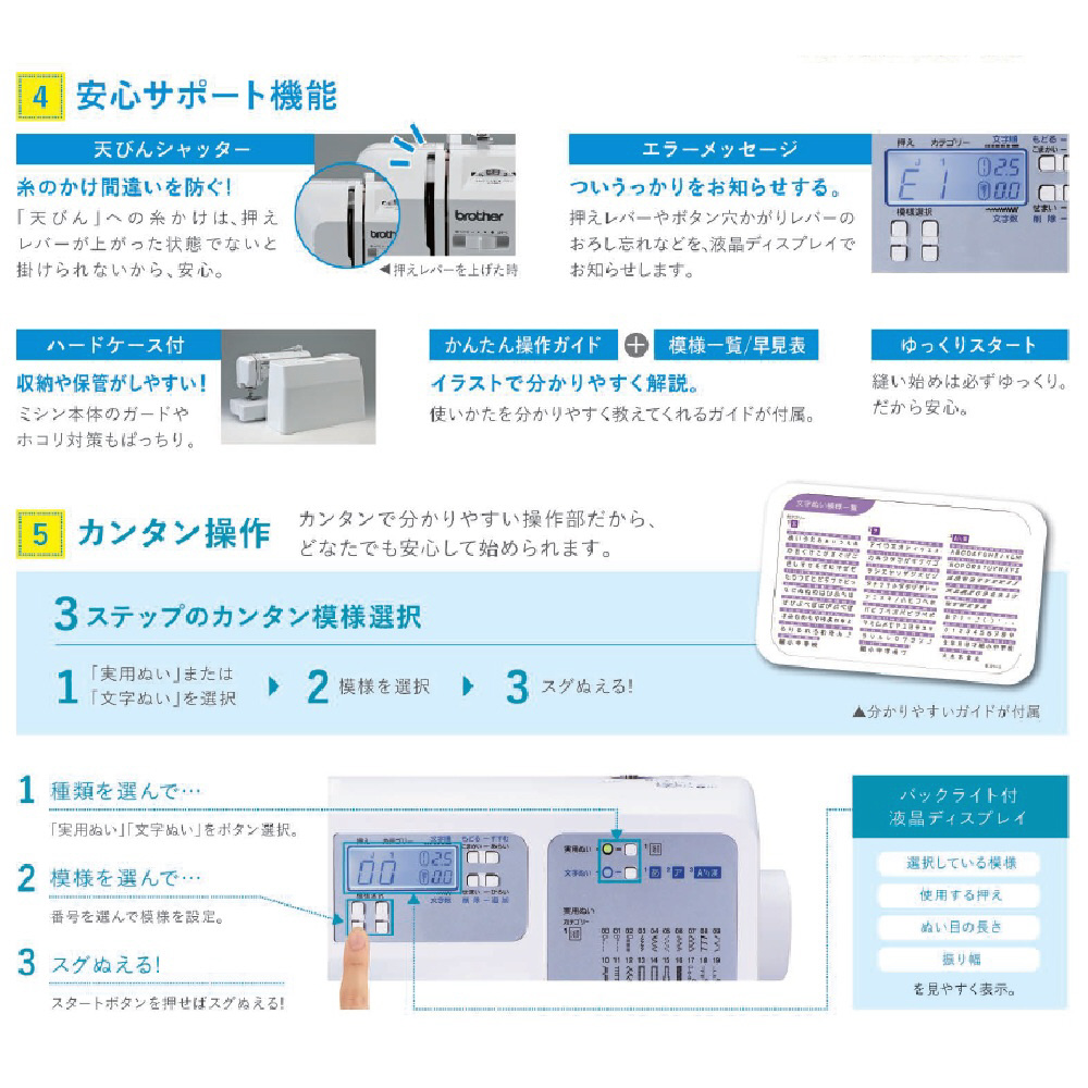 ジグザグ押え(本体に装着)・ボタン穴かがり押え・たち目かがり押え・片押え・まつりぬい押え・模様ぬい押え・リッパー・付属品バッグ・ハードケース・フットコントローラー・取扱説明書・かんたん操作ガイド・模様一覧/早見表・ボビン・ネジ回し・ドライバー・ミシンブラシ・糸こま押さえ(大)(中)・針・電源コード