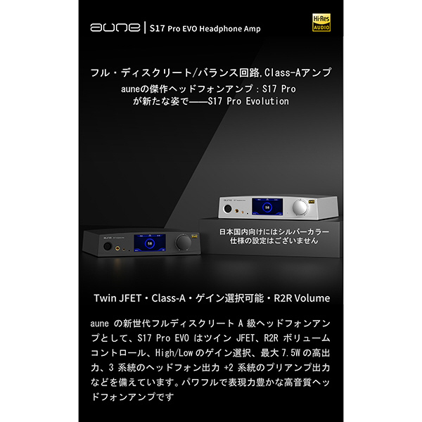 JRCのR2Rボリュームとフルディスクリート回路を組み合わせたS17 ProEVOは、高い制御精度とバランスの取れた音質再生を実現します