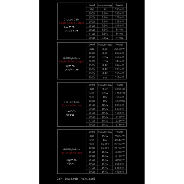 XLR/6.35/4.4ヘッドフォン出力インピーダンス:1Ω
