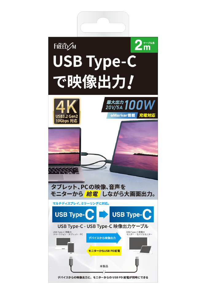 USB-C ⇔ USB-Cケーブル [映像 /充電 /転送 /2m /USB Power Delivery /100W /USB3.2 Gen2] ブラック FUSB-CCAP120BK [USB Power Delivery対応]