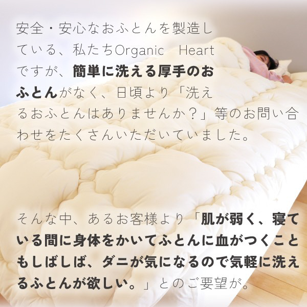お客様の声にお応えし、待望の「気軽に洗えるふとんシリーズ」が生まれました。