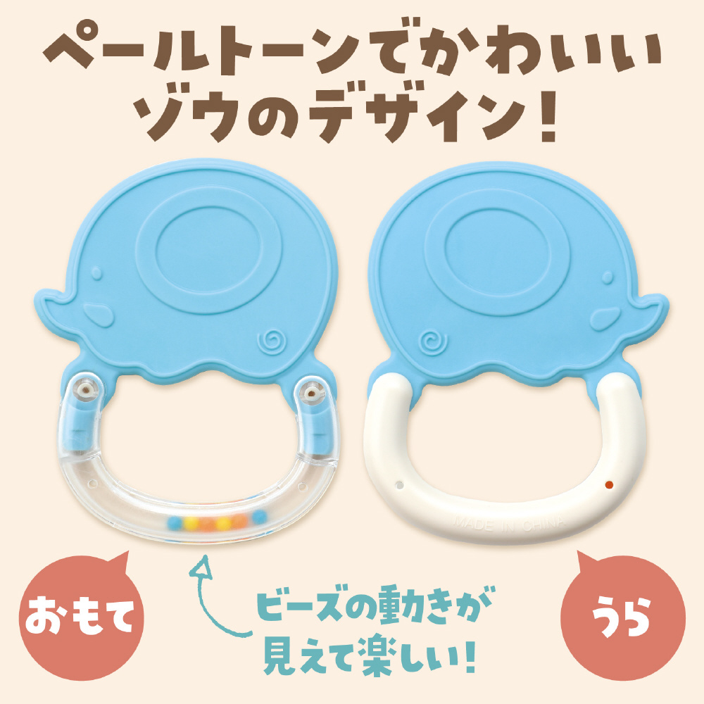 コンパクトサイズのかわいいぞうモチーフのラトル!