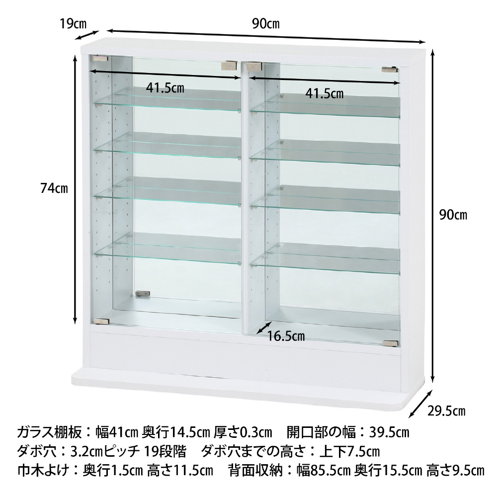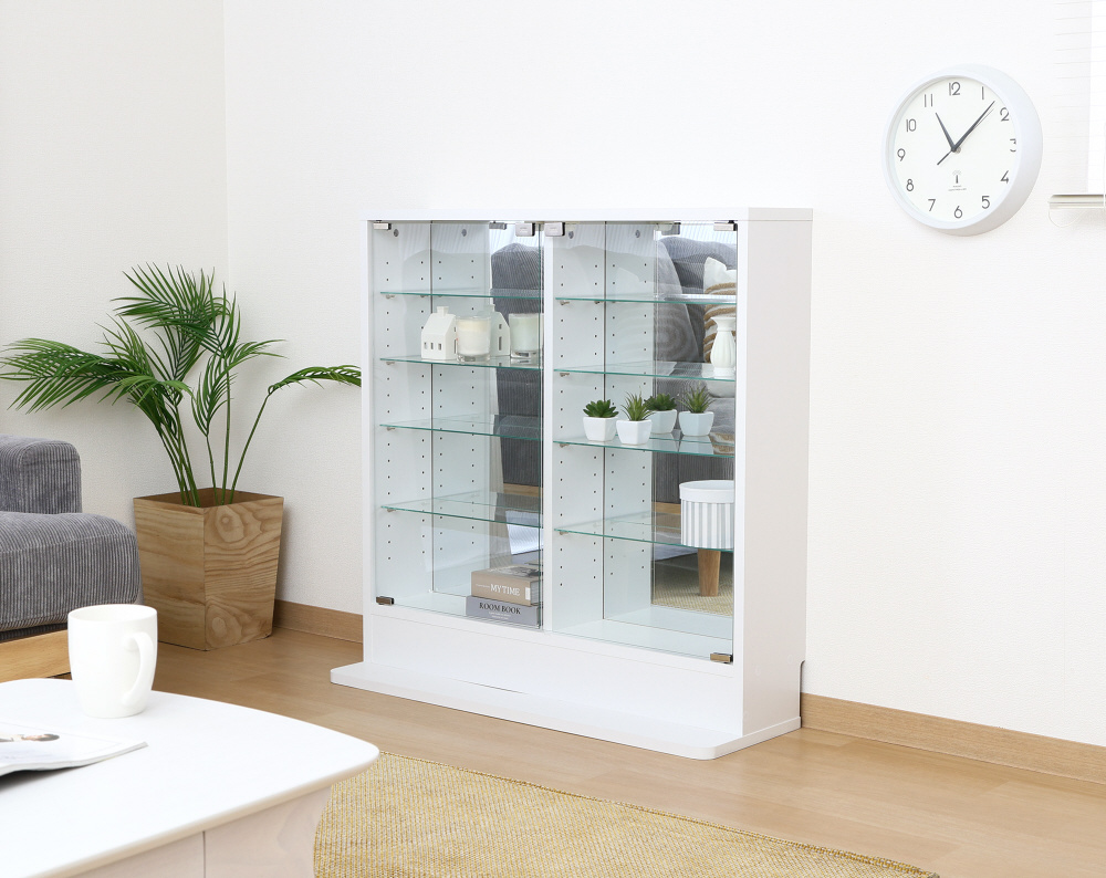 スリムだけど大容量のロータイプガラスコレクションケース ミラー付き