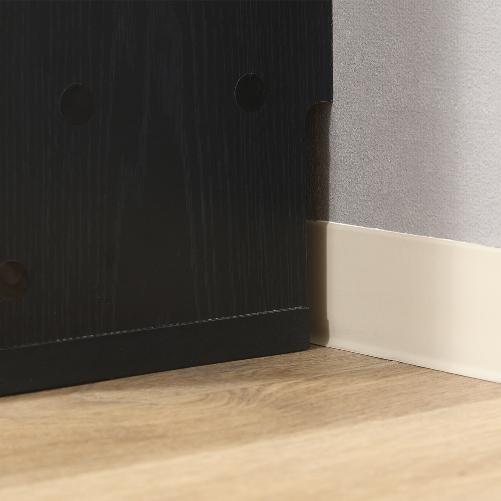 ピタッと壁付けできるように、巾木をよける加工を施しています。