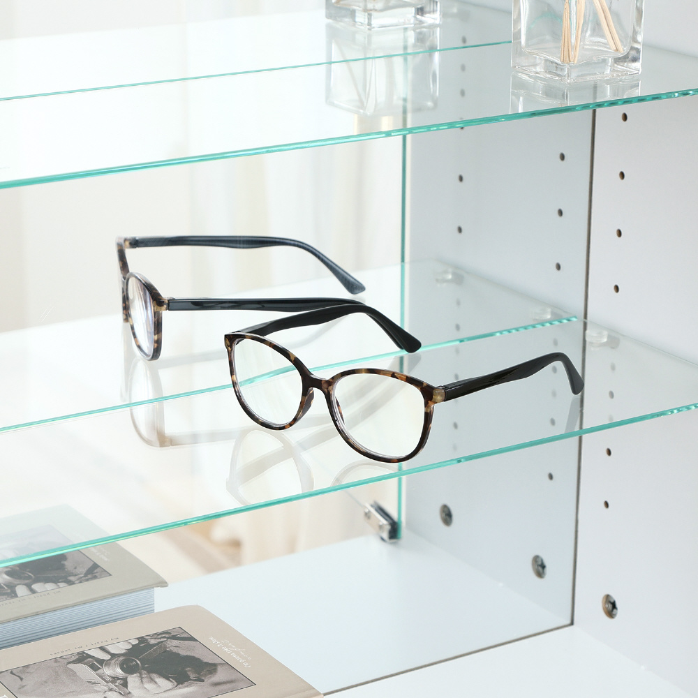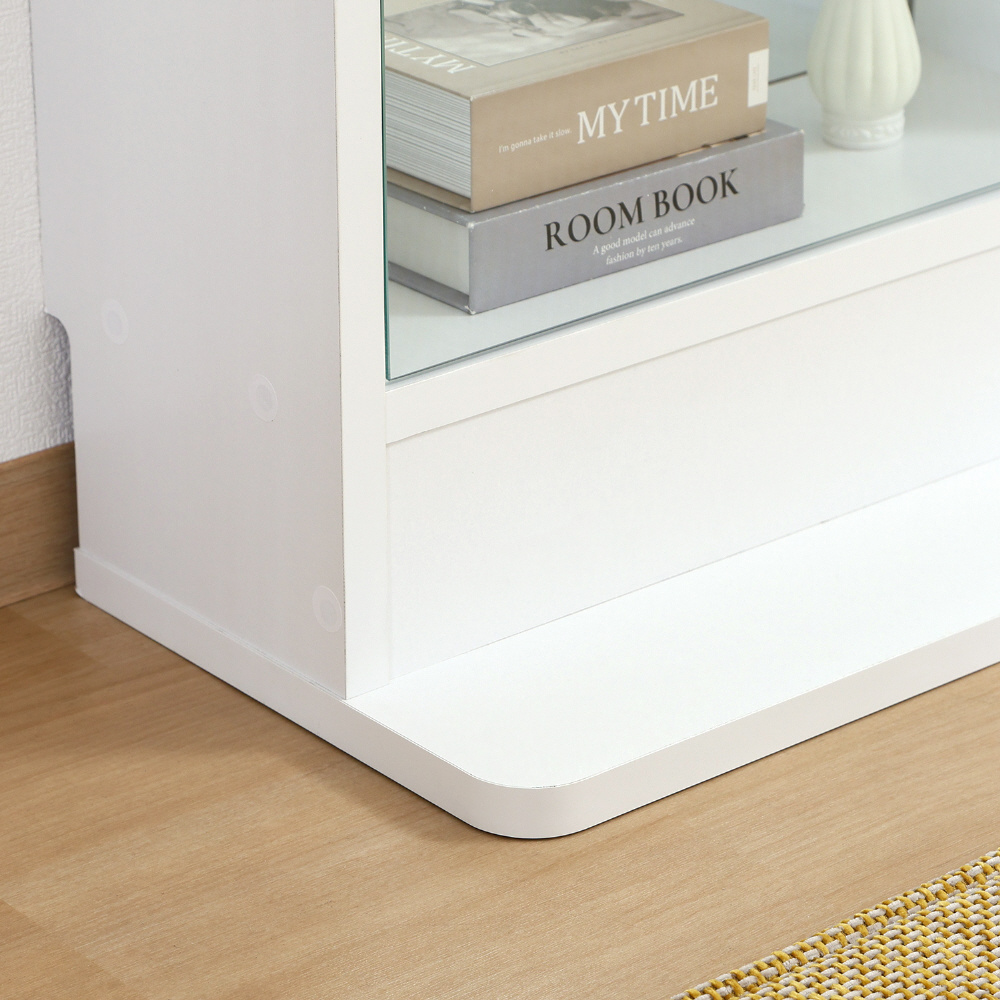 ガラス棚板は幅43.5×奥行14.5cm。取り外すこともできるので、自由にレイアウトを楽しめます。