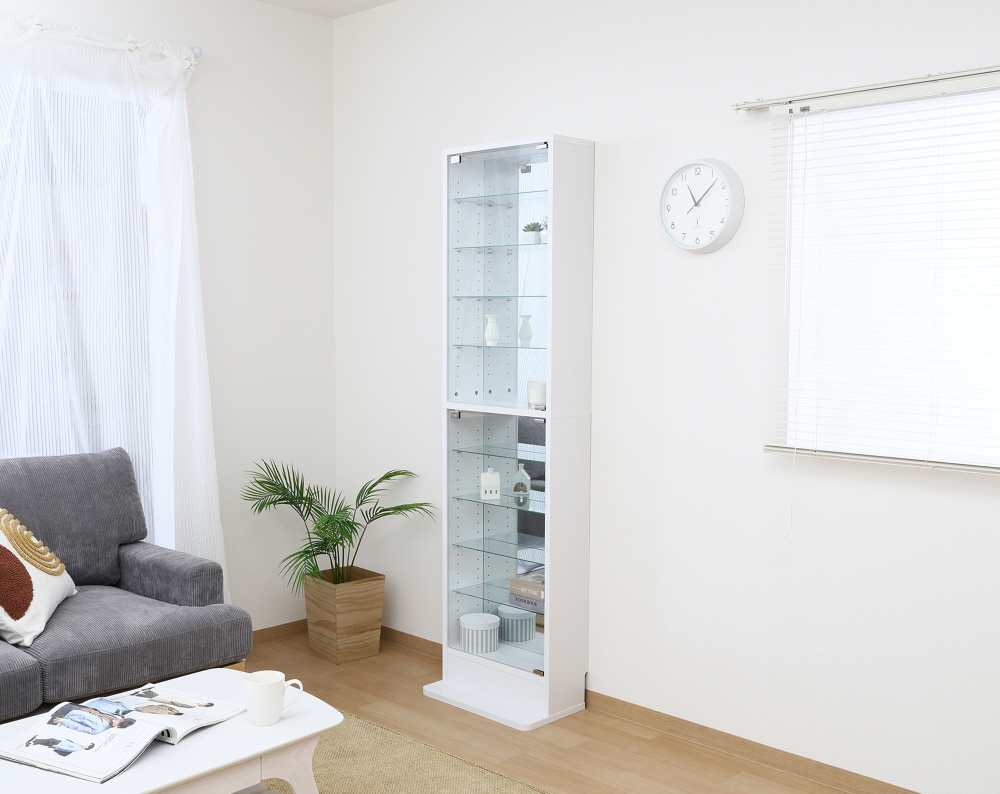 スリムだけど大容量のハイタイプガラスコレクションケース ミラー付き