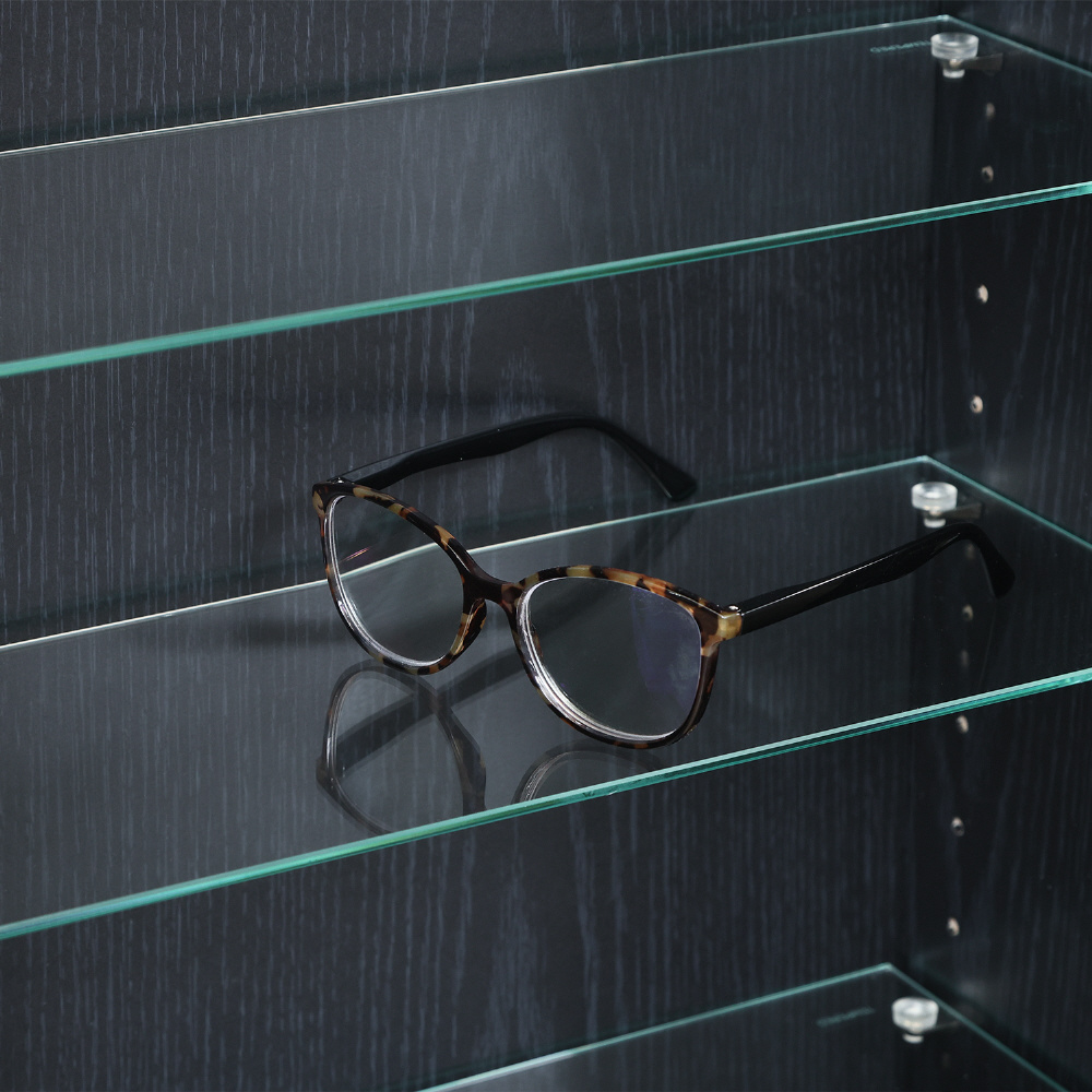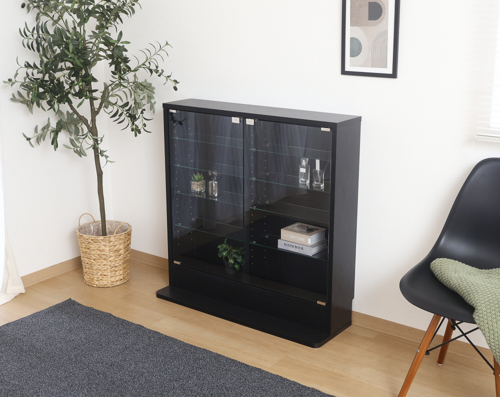 ガラス棚板は幅41×奥行14.5cm。取り外すこともできるので、自由にレイアウトを楽しめます。