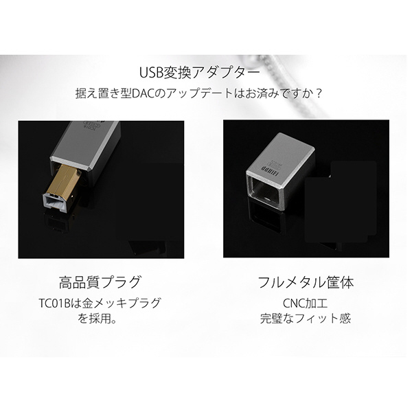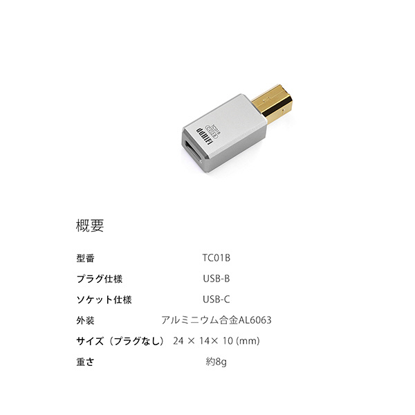旧来のUSB-B端子に新たな命を吹き込む TC01B  USB-B to USB-C コンバーター 新登場。近年、USB-C端子の普及が進む中で、従来型のオーディオデコーダーなどのUSB-B端子を採用した機器の接続に不便を感じる場面が増えてきました。そんな悩みをスマートに解決するのが、TC01Bです。