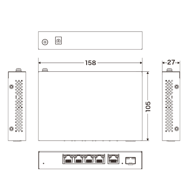 スイッチングハブ [5ポート /2.5Giga対応 /ACアダプタ] メタル筐体 (SFP+:1ポート) ブラック BSH-QG05