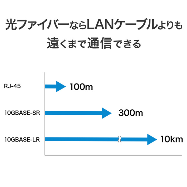 環境に応じたSFP+モジュールをご用意いただくことで、LANケーブルや光ファイバーを使用した10Gbps通信が可能です。