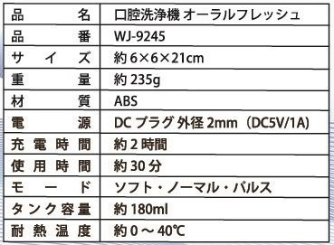 WJ-9245 口腔洗浄器 オーラルフレッシュ