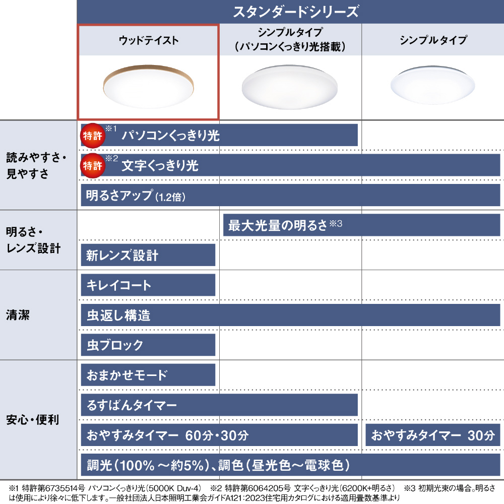仕様3 リモコン【明るさアップ・パソコンくっきり・ゆらぎ・全灯・普段・白い色・やや暖かい色・暖かい色・常夜灯〈6段調光可能〉・消灯】 リモコン送信器使用時のみ〈100%〜約5%〉調光・〈昼光色〜電球色〉調色可能・常夜灯(6段調光可能)