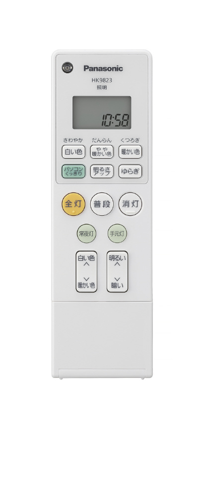 仕様3 リモコン【明るさアップ・パソコンくっきり・ゆらぎ・全灯・普段・白い色・やや暖かい色・暖かい色・常夜灯〈6段調光可能〉・消灯】 リモコン送信器使用時のみ〈100%〜約5%〉調光・〈昼光色〜電球色〉調色可能・常夜灯(6段調光可能)