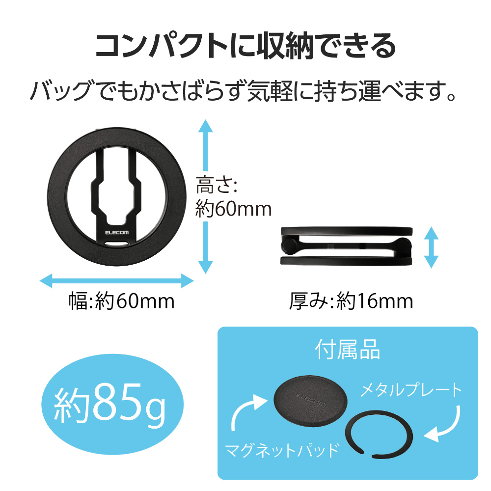 MagSafe対応スマホケースや付属のメタルプレートと併用することで、MagSafe非対応のスマートフォンでも使用可能です。