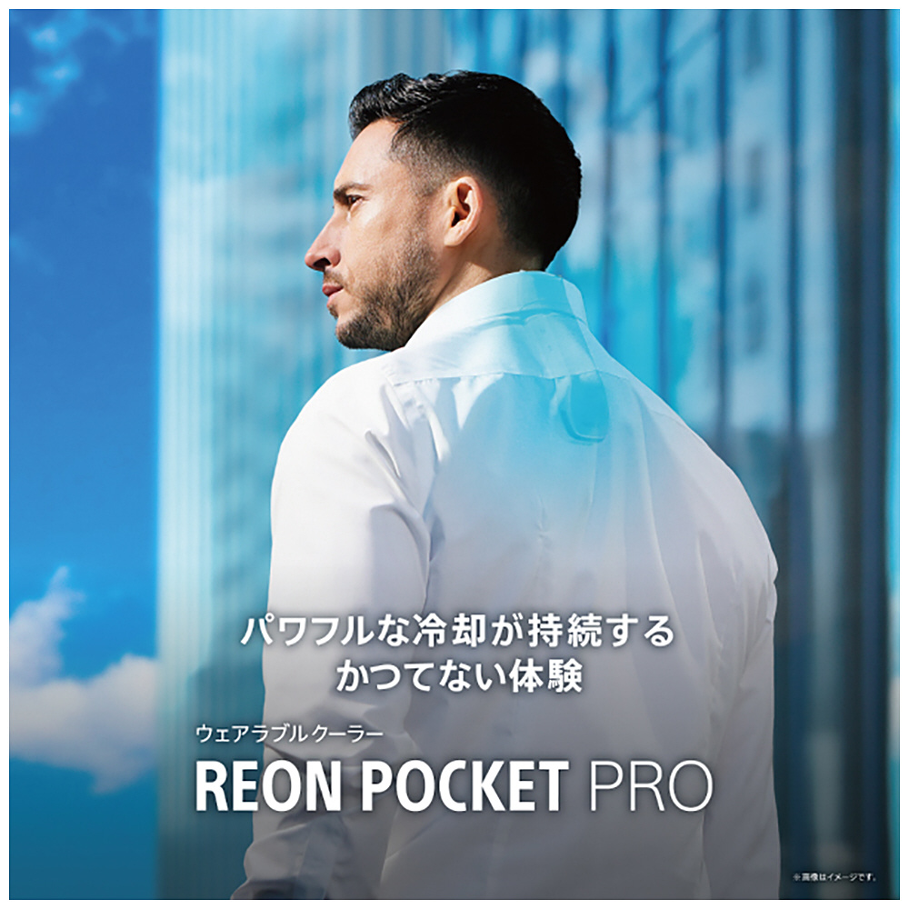 本体接触部分の体表面を冷やしたり温めたりすることのできるウェアラブルサーモデバイス、REON POCKET PRO (レオンポケットプロ)センシングキット。パワフルな冷却が持続する、かつてない体験。冷却面積2倍、吸熱性能最大約2倍。