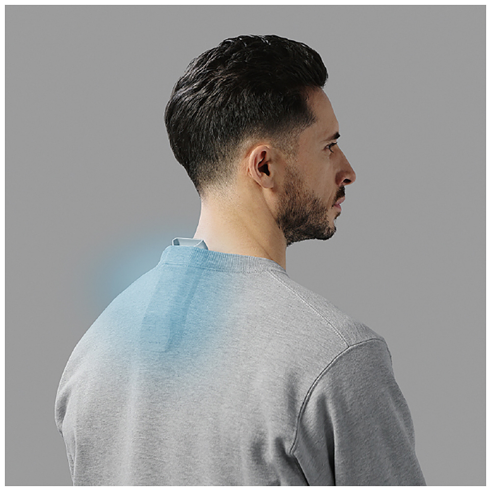 面積が2倍に拡大した冷却面が体表面に確実に接触するよう、カーブドデザインを採用しました。これにより様々な体格のユーザーが使用する場合でも、冷却・温熱面の密着感が向上しています。新開発のネックバンドにより、保持力・柔軟性ともに向上しています。先端部にはネックバンドサポーターを搭載し、装着時の肌触りを改善しました。首元に柔軟に追従するため、本体の重さを気にせず、より自然な心地を実現しています。