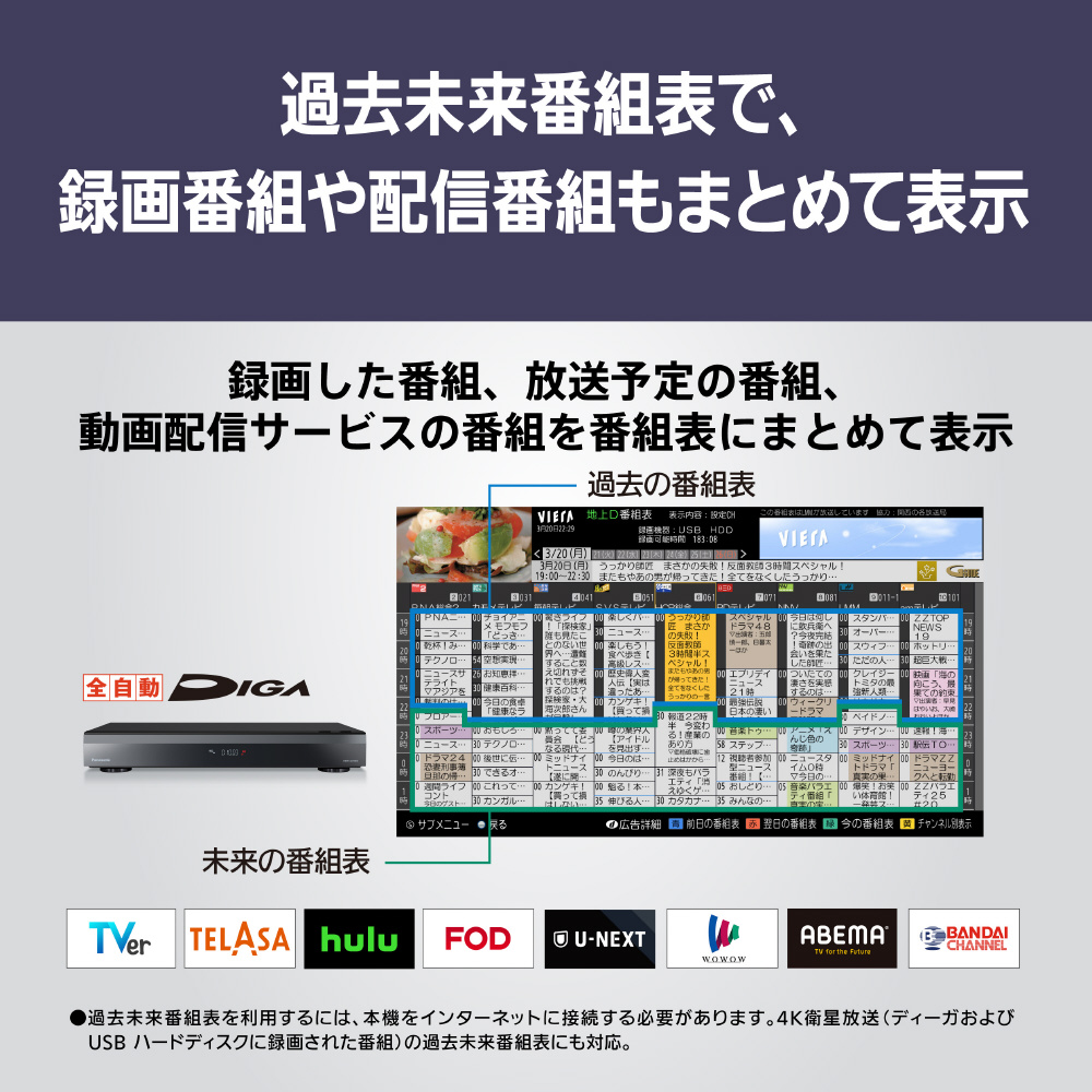 ※●Fire TVに関するご案内:〇Fire TVをご利用いただくには利用規約への同意が必要です。〇サービスや一部機能のご利用にはAmazonアカウントでのサインインが必要です。Amazonアカウントの新規取得にはパソコンやスマートフォンなどの端末とメールアドレスまたはSMSが受信可能な電話番号が必要です。〇サービスによっては、別途登録・契約や料金が必要な場合があります。また、予告なく変更・停止・終了する場合があります。〇Fire OSおよびFire TVの画面等は随時更新されるため、2025年5月現在の情報で記載しております。本サイトに記載のタイトルやメニューは実際と異なる場合があります。〇一部機能の利用には、本機をネットワークに接続しての機器本体のバージョンアップが必要となる場合があります。詳しくはhttps://panasonic.jp/viera/supportをご確認ください。オンラインサービスのご利用には、別途登録・契約や料金が必要な場合があります。また、予告なく変更・停止・終了する場合があります。