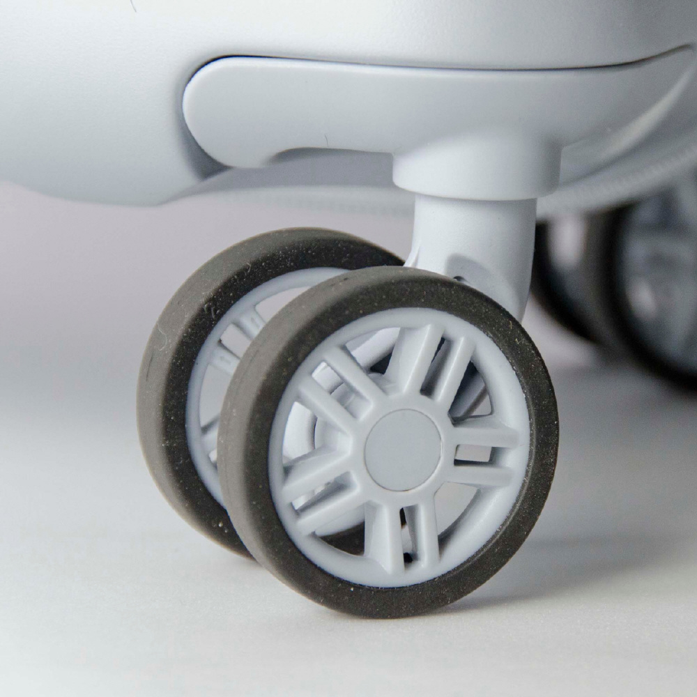 独自設計のタイヤにより、走行時の音を大幅軽減。混雑した駅や空港でも静かでスムーズな移動を実現します。