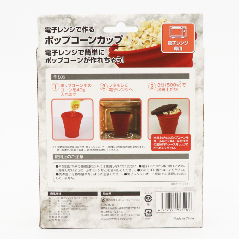 電子レンジで作るポップコーンカップ レッド HDL-5109