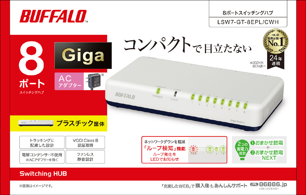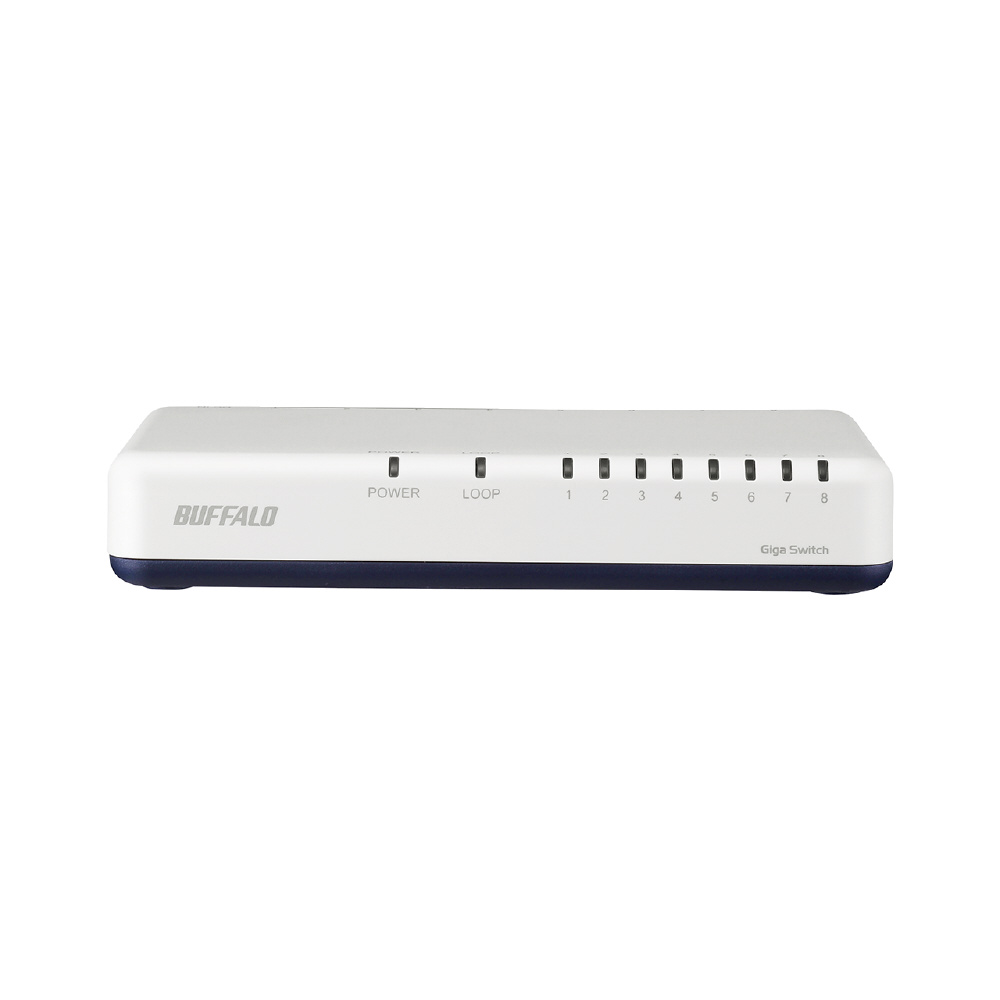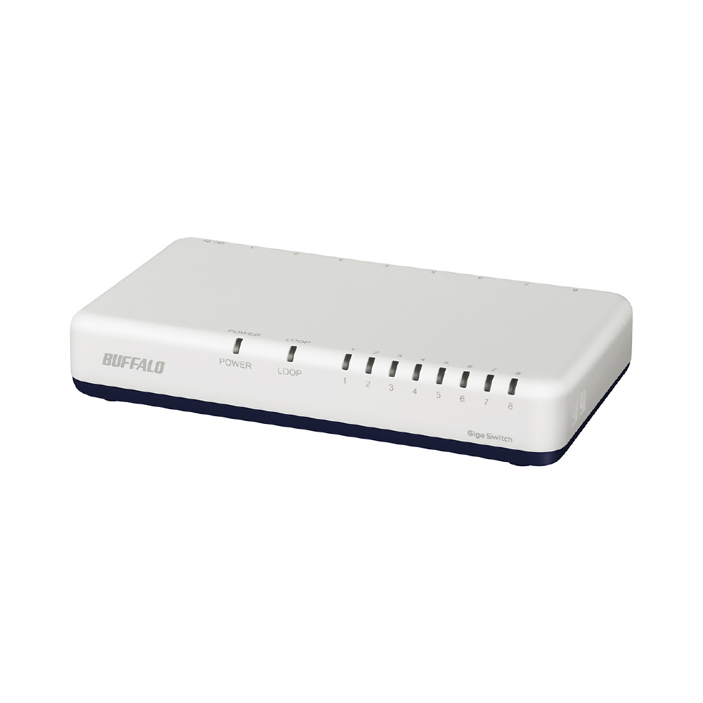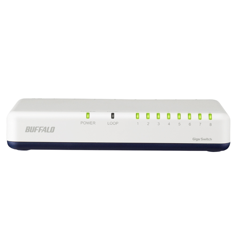搭載している8ポート全てがGigabitイーサネット(1000BASE-T)に対応。GigaLAN端子搭載パソコンやネットワーク対応HDD(NAS)〈テラステーション/リンクステーション〉とのGiga接続が可能、高速ネットワーク環境をスマートに実現します。