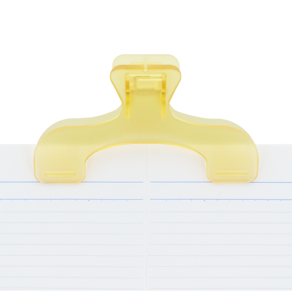 見たいページを開いたままキープできるブッククリップ、「ウカンムリクリップ」に新デザインが登場!本の背を避けて留める形状なので、分厚い教科書やレシピ本にも使えて、開き癖がつかず本が傷みにくいのが特徴です。持ち手部分が反り返っており、軽い力で大きく開けるのも嬉しい。本の文字を邪魔しない、シアーカラーのお洒落なデザインです。
