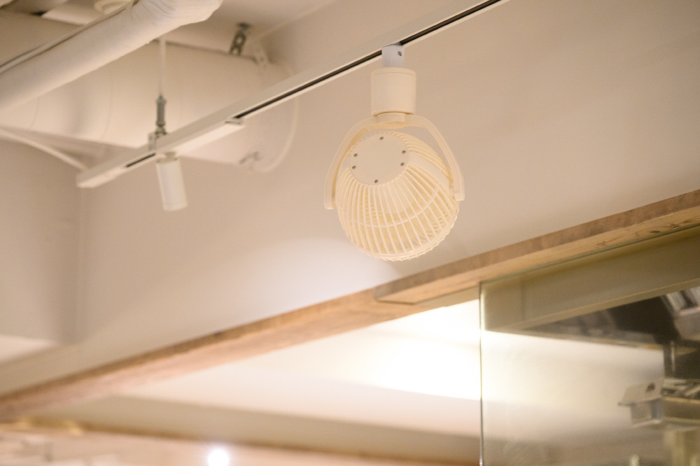 天井からパワフルに送風する小型レールファン