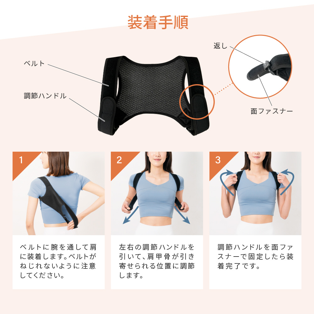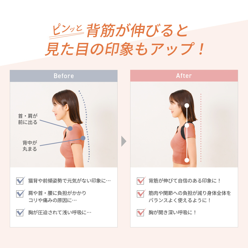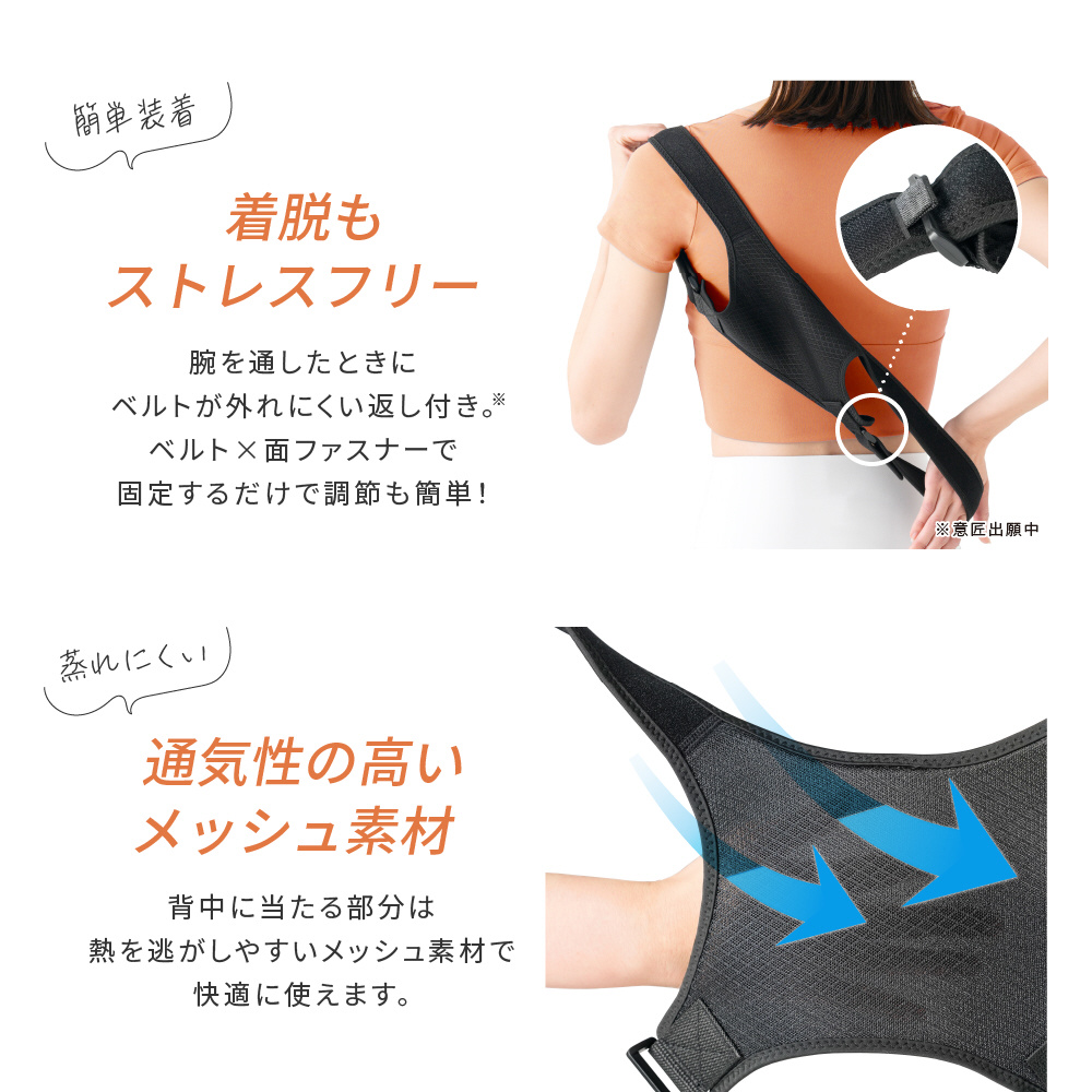 肩甲骨を引き寄せ、正しい姿勢へと導き、見た目の印象もアップ!