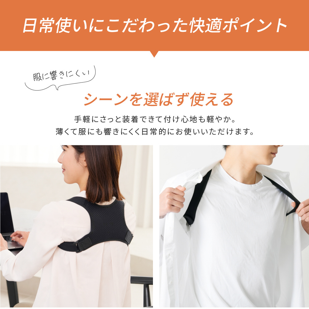 忙しい毎日でも無理なく姿勢をサポートすることができます。