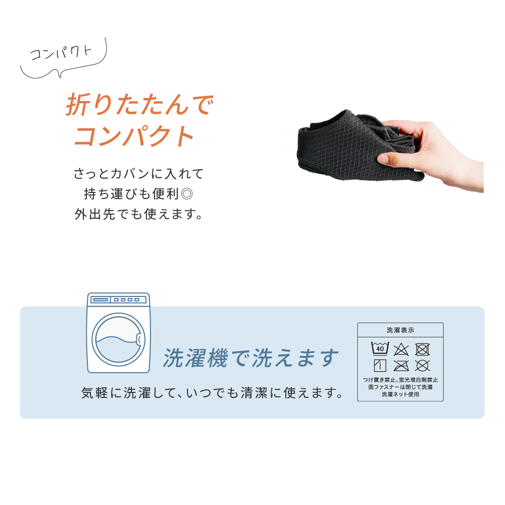 本体はコンパクトに折り畳めるので、バッグインして外出先でも使えます。