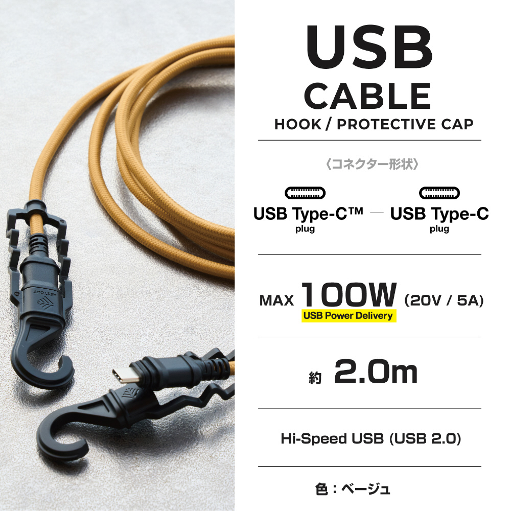 USB Type-C ケーブル ( USB-C to USB-C ) 2m PD 100W 急速充電 高耐久 先端保護 キャップ一体型フック付 IP54 防水/防塵 充電ケーブル 【 Type C ポート搭載 iPhone iPad MacBook 等対応 】 NESTOUT MPA-CCNE20BE