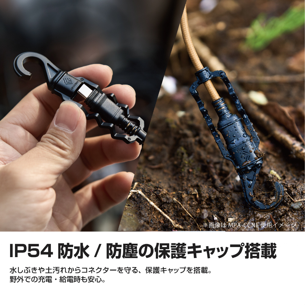 アウトドアシーンでの充電・給電時に活躍!高い防水・防塵性能を備えた高耐久USBケーブルです。ケーブル外皮・内部配線に耐久力を高める構造を採用。JIS保護等級IP54で水や土汚れ、砂ぼこりからコネクターを守るから、キャンプやハイキングでも安心して使える頼もしい存在。ポータブル電源やモバイルバッテリーとの相性も抜群です。USB Power Delivery 100W対応で急速充電も可能で、幅広い機器に使用できます。